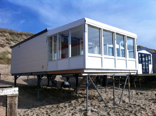 Hierboven zie je een flexibel dak, opgespannen met rubbers en
