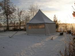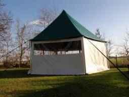 Hierboven de tent Tige, alleen als dak of met zijwanden,met of